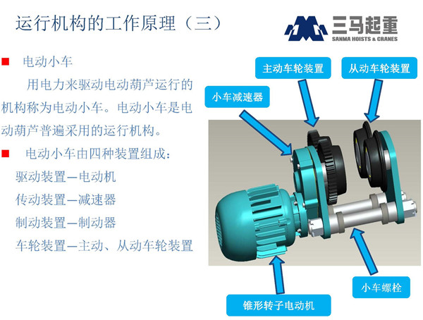 三马船用草莓视频二维码防窜动运行小车使用的船上的机舱吊或者悬臂吊上,齿轮和齿条啮合,以防止船体晃动时,草莓视频二维码出现窜动,以免发生危险。