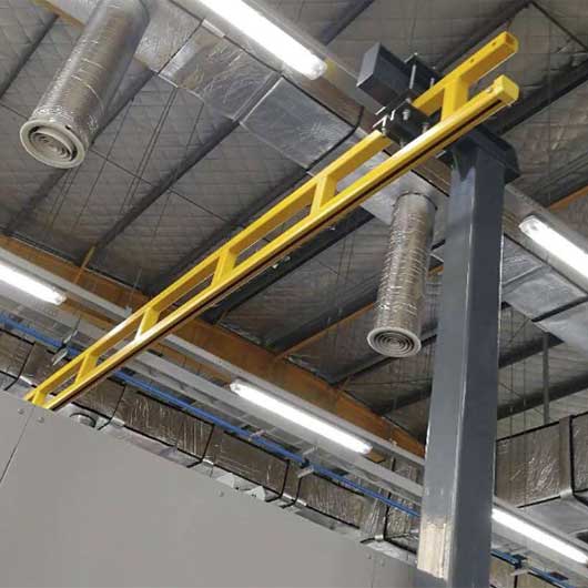 ★电动单梁起重机桥沿两侧高架桥轨道纵向运行,起重车沿桥梁轨道横向运行,形成矩形工作范围,可充分利用桥下空间吊装材料,不受地面设备阻碍。