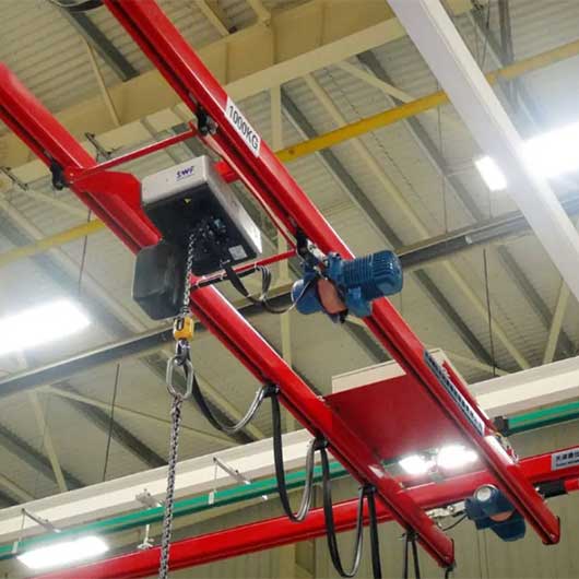 柔性单轨悬架起重机应用广泛,功能突出。所有部件都可以随意组合,因此轨道方向可以根据客户车间的施工情况灵活布置,以满足生产加工中特定产品和工作位置的特殊要求。