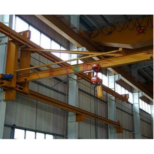墙式伸缩旋臂起重机包括两个固定座椅沿垂直方向固定在墙上,两个固定座椅之间有转轴,转轴上有电机;一端固定在转轴上,另一端固定在与主旋臂相连的拉杆上。主旋臂内设有空腔,主旋臂一端固定在转轴上,另一端自由端,下部设有草莓视频二维码;伸缩臂位于空腔内,与主旋臂滑动连接;伸缩臂伸出主旋臂的一端固定连接辅助旋臂,辅助旋臂垂直于伸缩臂;辅助旋臂两端下部分别设有草莓视频二维码;草莓视频二维码和电机与电控装置电连接。本发明降低了吊点选择的准确性,节省了时间和精力,可以顺利提高材料,特别是细长材料和大体积材料。