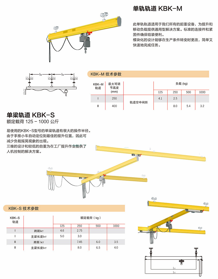 由于设备自重轻、运行小车操作轻便,KBK 单梁悬挂起重机可以轻松地实现手动移动,能够快速可靠地输送那些粗大笨重的工件。